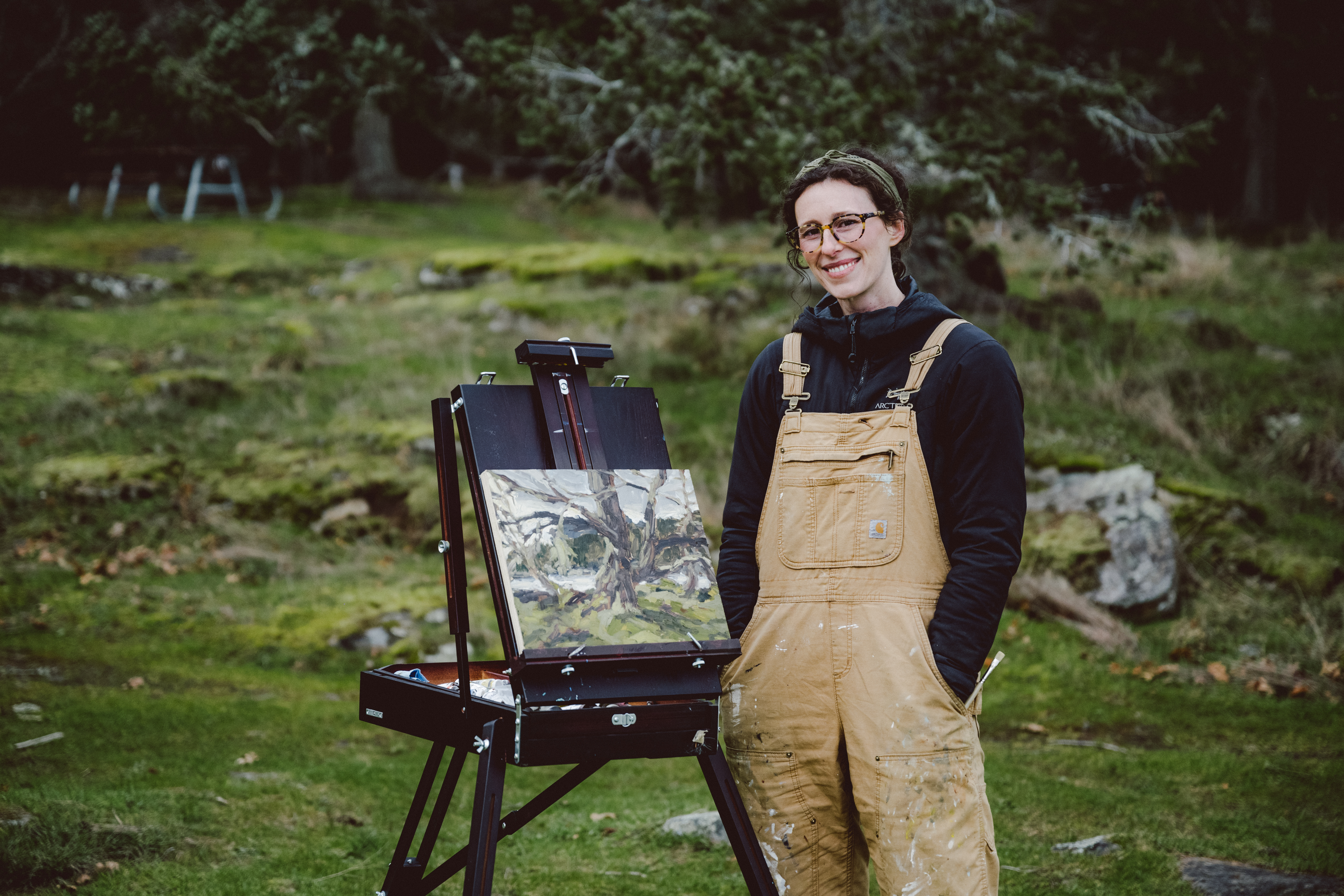 Photo courtesy of Jamie Sterling, Southern Gulf Islands Tourism: Artist and musician Jenny Ritter at work on Mayne Island.