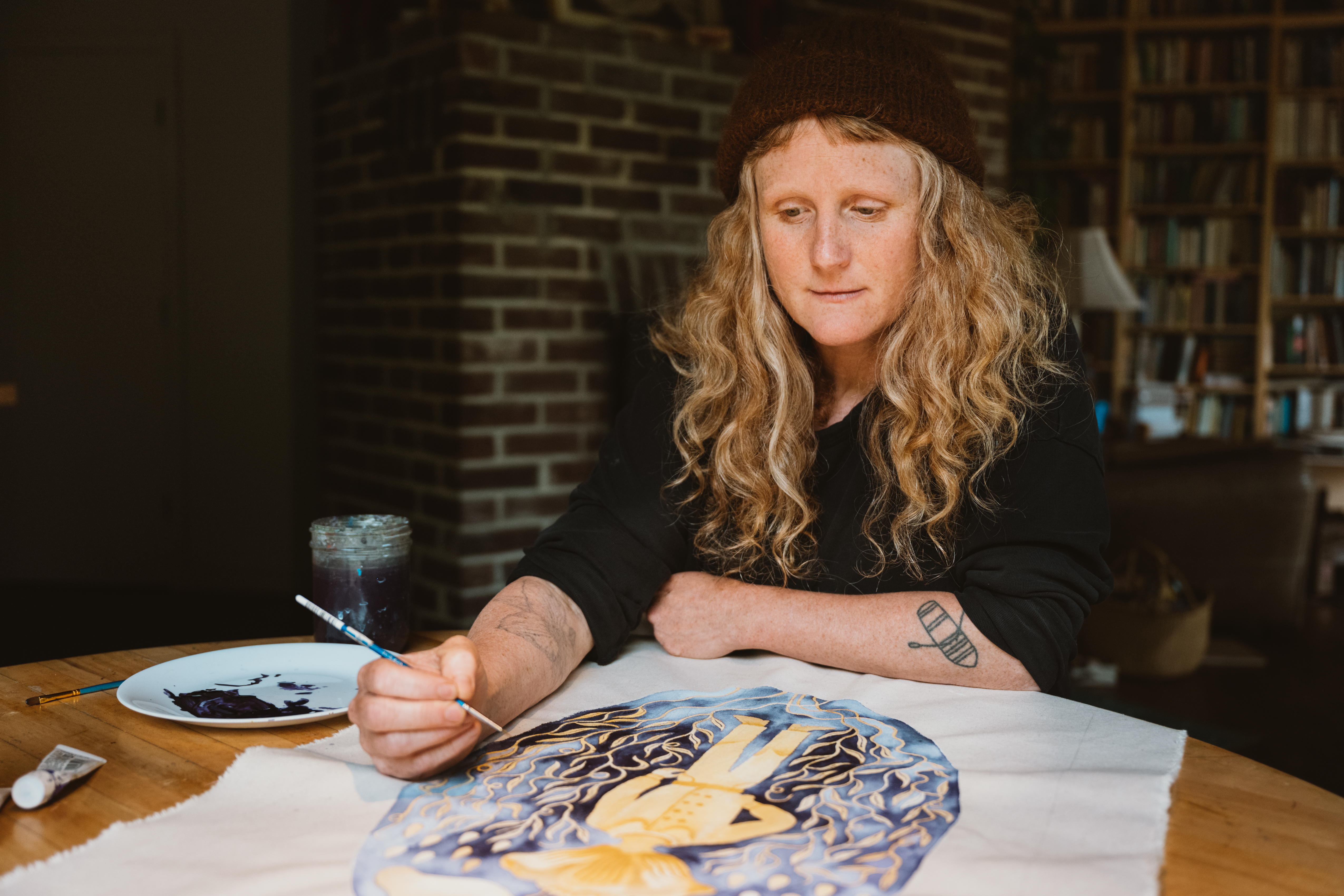 Jenny's daily practice, now centred around school schedules and life with her daughter, often begins with a walk in the woods. As she wanders, birdwatching or mushroom hunting, she explains, this "time for thought is essential to the creativity that brews in the background of the mind." Her subconscious gets to work in these quiet moments, and once she’s back at home with a warm drink in hand, she can let the rest flow.