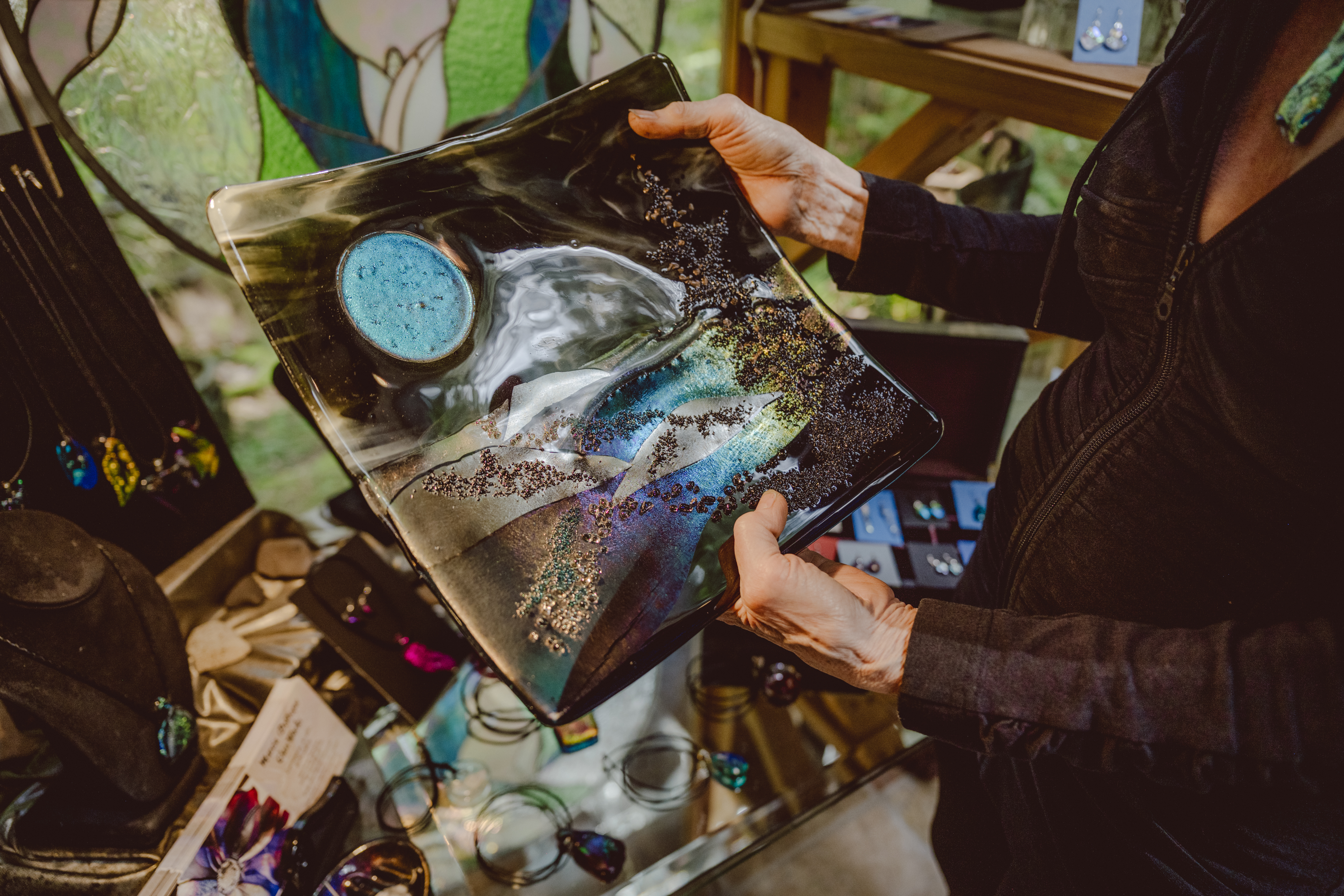 Glassworker, gardener, and shepherd Maricia De Vique has lived and created full-time on Galiano Island for the last 22 years. Over the course of her career, her art has explored many different materials, from clay to stained glass. But now, her practice has settled into working almost exclusively with warm glass (glasswork that happens between 1100°F and 2000°F). She fuses, casts, and drapes glass creations that explore the land, sea, and botanicals that make up her world on Galiano.